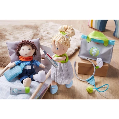 - Ideal for creative, open-ended play- based learning, this doctor’s kit allows your little one to care for and nurture their doll just like a real doctor. Intended for use with 12″ HABA soft dolls or similar sized dolls.