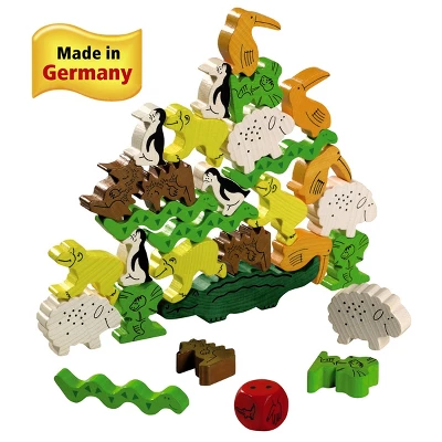 - A wobbly stacking game for 2-4 players ages 4-99. A True HABA classic, Made in Germany this game is fun for the whole family and a favorite for Adult Game night too!