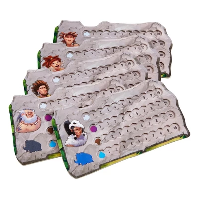 - Gather resources and use them to complete trade agreements, lure mammoths to the tribe herd, and move their cavemen up the sacred mountain. But, if you don’t make sure that at least one of your actions is allocated to Honga’s den, he’ll come steal food from you!