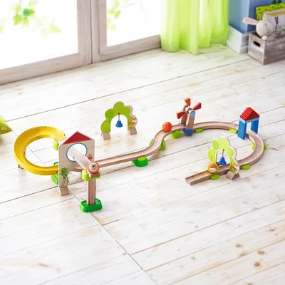 - Kullerbu is the perfect combination of wood and plastic parts and highlights the advantages of each material making this sturdy play system from HABA one that will last for your child’s entire childhood – and beyond. Thanks to its large parts, which cant be swallowed (ball Ø: 1 3/4 inches), they ensure playing fun for children from two years of age.