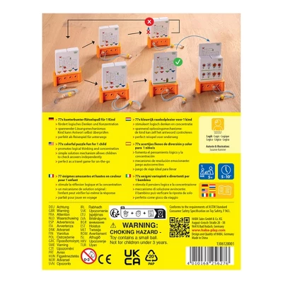 - Set includes: 40 puzzle cards with 77 puzzles, 1 puzzle box, 1 wooden peg with string and cord stopper, a set of instructions.